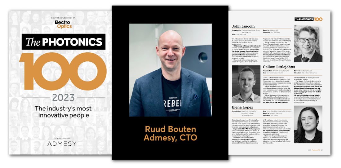 Admesy 联合创始人兼首席技术官 Ruud Bouten 入选全球光学领域权威榜单 Photonics 100。该榜单表彰了在光子学技术和应用方面做出杰出贡献的领导者,Ruud Bouten 凭借其在光谱仪和色彩测量领域的持续创新而获此殊荣。